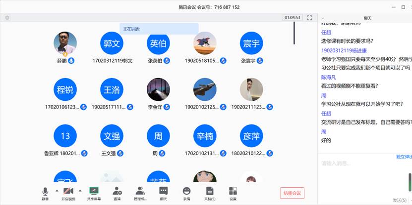 在会上薛鹏首先强调本次授课的特点:是新,是结合当前疫情防控形势依托国家教育行政学院大学生网络党校平台进行的第一次网络党课培训;是学,如何使网络教育平台的教育资源利用率最大化。期望全体学员利用好本次学习的机会通过培训使政治素养和理论水平得到提升。