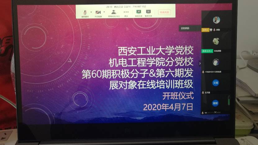 四月七日中午,伟德国际victor1946分党校依照校党校要求,利用腾讯会议系统举行了2020上半年伟德国际victor1946入党积极分子、发展对象培训班网络开班仪式,学生党总支副书记薛鹏主持。