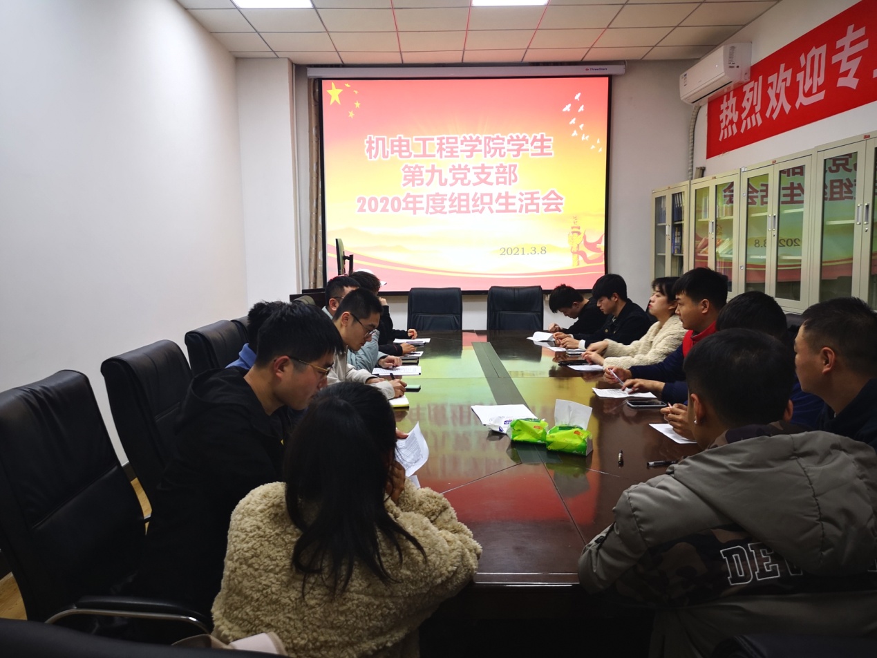 为深入学习贯彻习近平新时代中国特色社会主义思想和党的十九届五中全会精神,做好基层党组织组织生活会和开展民主评议党员,根据学校《2020年度基层党组织组织生活会和开展民主评议党员几个问题的通知》,3月8日晚,学生第九党支部于工二308会议室召开2020年度组织生活会,开展了民主评议。会议由支部书记刘昊雨主持,支部全体党员参加。