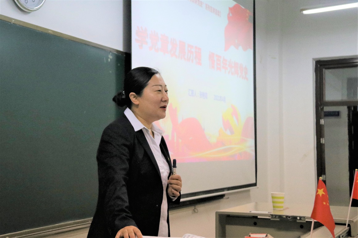 随后,张艳霞回顾党史,讲诉了我党建设的四个重要阶段,从初步创立、逐步成熟、曲折艰难到如今的稳步发展,都在彰显着中国共产党的艰苦磨难和光辉历程。