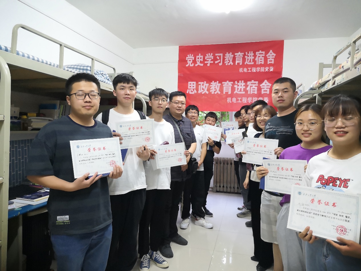 决赛在1公寓辅导员工作站进行,主持人介绍比赛规则,竞赛由快问快答和限时党史宣讲二个部分组成。经过激烈角逐后,李栋栋同学获得一等奖,吴家军、陈友曾、严晨、赵海越四位同学获得二等奖,其他同学分获三等奖及优秀奖。
