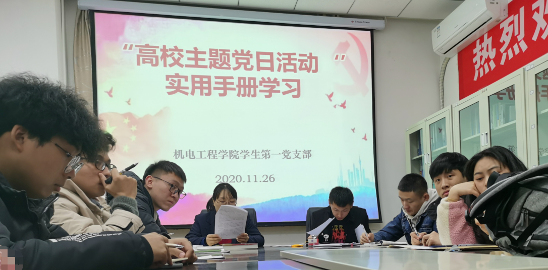 11月26日,学生第一党支部全体成员在工2-308召开学习《高校主题党日活动使用手册》活动。本次会议由张岩同志主持,支部全体成员参加。