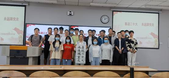 活动伊始,王熠凡以“喜迎二十大,永远跟党走”为主题带领支部成员探寻历次党代会的足迹,引导广大党员重温党的伟大奋斗历程,迈出“永远跟党走”的坚定步伐。学生第五支部全体成员集体朗诵《可爱的祖国》,献礼二十大。最后,支部王越同志展示了自己为喜迎二十大创作的书法作品。