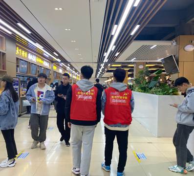 为进一步优化学生就餐高峰期的餐厅礼仪,保障就餐秩序,学生党员化身志愿者,携手膳食科工作人员就高峰期就餐占座、餐桌污染的现象进行劝阻止,对排队拥挤的同学进行引导,并提醒用餐后的同学及时佩戴好口罩离开餐厅。维持秩序过程中,我校学子积极配合志愿者和工作人员的劝阻、引导,及时纠正,并对志愿者和工作人员的辛苦付出表示感谢。