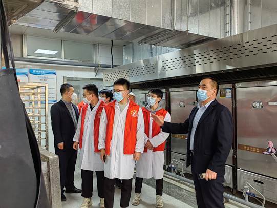为使学生党员深入了解后厨运作及管理模式,学生第三支部学生党员在餐厅工作人员的陪同下进入博苑餐厅后厨参观。期间工作人员为学生党员详细介绍了蔬菜清洗间、切配间,食材存储间,餐具清洗间等的功能和作用,并对食材采购、加工,餐厅卫生,食品安全等方面给与讲解。参观期间,学生党员接合所学专业就后厨大型设备使用,排污、防火系统运行等知识与工作人员进行深入交流学习。