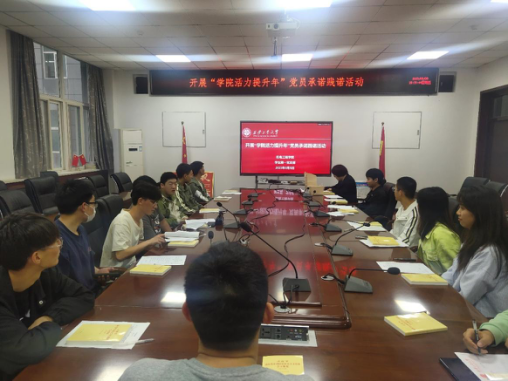 为了充分发挥党支部战斗堡垒作用,激发师生党员担当作为的新活力,增强师生党员干事创业的责任感与使命感,学生第一党支部于5月5日组织召开以“学院活力提升年”为主题的党员承诺践诺活动,本次活动由支部书记张岩同志主持,全体党员参会。