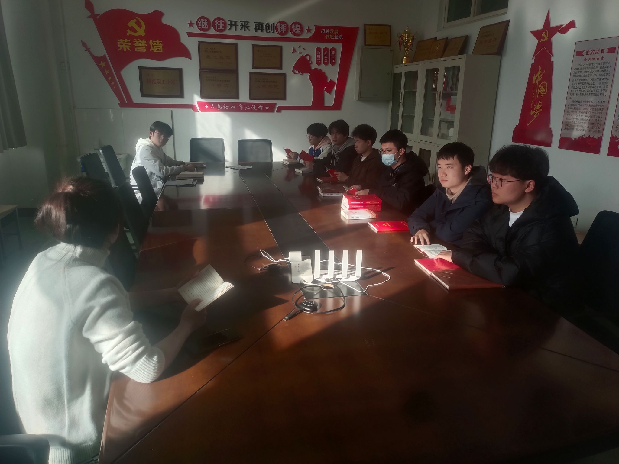 接着,党支部书记高珊同志组织全体党员学习党章,对什么是党员、党员必须履行的义务、如何成为一名优秀的党员等问题进行了解答,她提出要不断提升自身内核提出了明确要求,在方方面面做好先锋模范带头作用。随后,全体党员坚定自己入党的初心,反思自身存在的不足,并以不断提升自身内核和更好地服务师生为目的制定自己的计划。