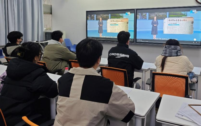 随后,大家一起观看了国家行政学院社会和生态文明教研部教授王茹,讲述的《为什么“绿水青山就是金山银山”》视频,她带领我们从我国生态文明建设以来取得的成就讲起,以理服人,让我们深刻理解生态文明建设的伟大意义。她还指出,“绿水青山就是金山银山”不是要用“叶子”去换“票子”,而是要破除发展与保护的二元对立。这让我们真正感受到生态建设的合理性。