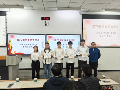 安春雨为第70期党课中表现突出的5名优秀学员颁发荣誉证书。