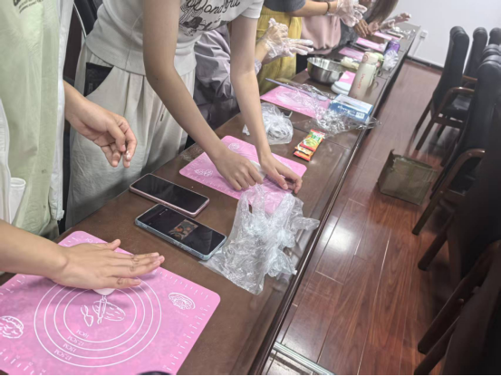 活动现场没有复杂的技法要求,却以最用心的手作温度,让每一枚成型的月饼都饱含了劳动的喜悦与节日的暖意。同学们在揉捏面团、包制馅料、压模成型的协作中,不仅体验了传统美食的制作工艺,更沉浸于温馨融洽的节日氛围。活动跳出了传统节日教育的模式,以“亲手制作”为体验核心,让学子们在劳动中深刻感知中秋文化的内涵与魅力。作为校园文化生活的重要一环,活动将团圆共享的节日气息引入校园,为学院增添了浓厚的生活意趣。
