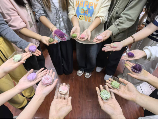 活动现场气氛热烈,同学们在指导下揉制饼皮、包入馅料、压模成型,一个个精致可口的冰皮月饼逐渐成型。活动不仅锻炼了学生的动手能力和协作精神,更深化了对中华传统饮食文化的理解与认同,在劳动实践中提升了文化素养,营造了温馨和谐的节日氛围。