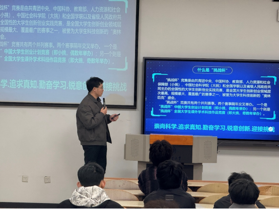 为帮助学院科创骨干深入了解“挑战杯”学科竞赛、中国国际大学生创新大赛的比赛流程与注意事项,提升参赛竞争力,12月10日,伟德国际victor1946举办学科竞赛专题培训。本次培训邀请校团委宣传部部长夏开成老师担任主讲人,学院科协全体骨干、知行工作室全体成员及2026年“挑战杯”竞赛团队负责人参加培训。
